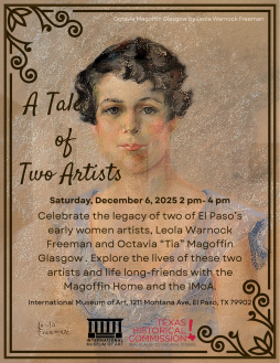 Please join the International Museum of Art and the Magoffin Home in celebrating the legacy of two early El Paso women, Octavia “Tia” Magoffin Glasgow and Leola Warnock Freeman in A Tale of Two Artists. Visit the International Museum of Art beginning Saturday, December 6, 2025 to view this new exhibit that explores the lives of these two women, as artists and as life-long friends.