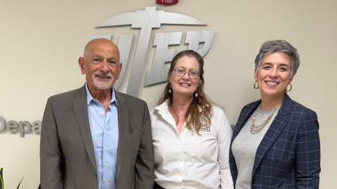Richard Dayoub, from Thunderbird Management, welcomes in the KTEP studios for the first show of El Paso Prime Time of the year, County Commissioner for Precinct 1, Jackie Butler.