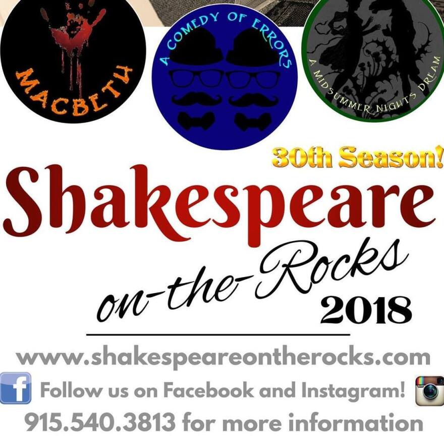 Shakespeare on-the-Rocks will celebrate its 30th season in the theater at the Chamizal National Memorial. The Festival opens with a new production of Macbeth followed by The Comedy of Errors and of A Midsummer Night’s Dream.
