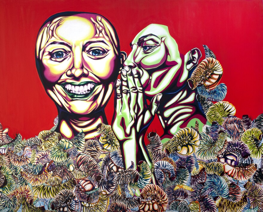 By employing painting, drawing, and printmaking techniques, bodies and backgrounds coalesce into an attraction-repulsion frenzy. Ultimately, her ambition is to offer a visual testament to the durability of the human mind and its never-ending metamorphosis.