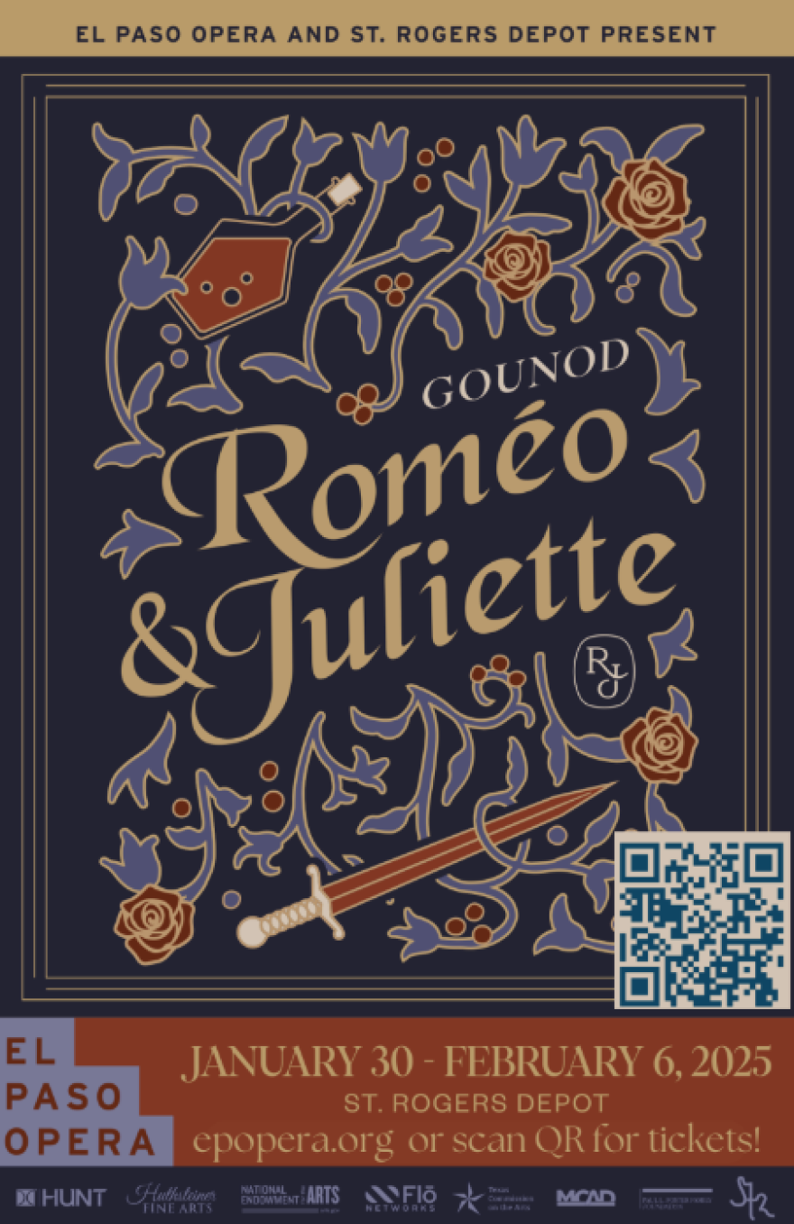 El Paso Opera presents Roméo & Juliette at St. Rogers Depot through February 6, 2025. This is an immersive and innovative production of the iconic tale of forbidden love.